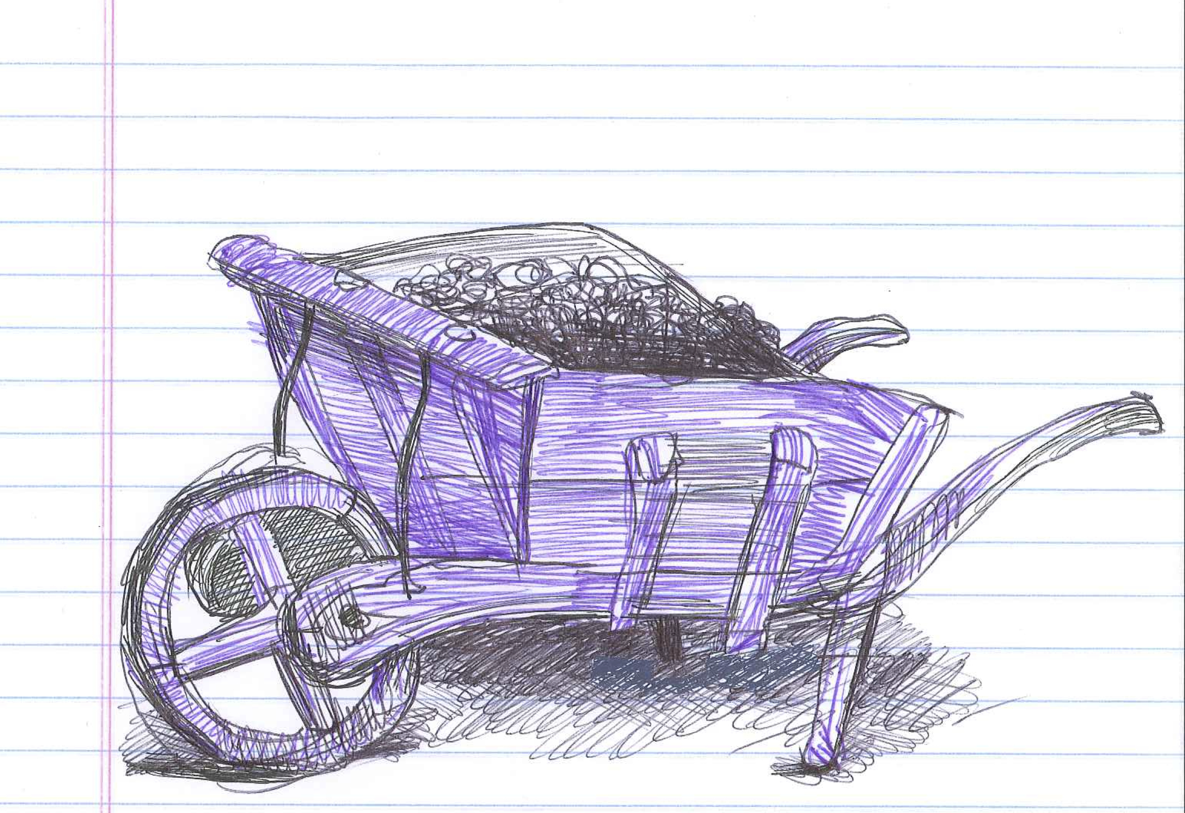 This gob has been working since the 14th century, meaning a “piece,” “lump,” or “mass.” And it was also put to work as a “cartload” in the 1600s. Perhaps you can imagine a worker hauling some mound of material–perhaps stone or straw or whatever it is piled up in that preceding doodle–one load at a time until the job is done. Indeed, Walter Skeat cites the expression “to work by the gob.” Perhaps our equivalent today would be a task or a project.