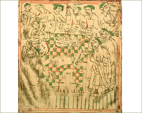 Exchequer soon went on to name the King’s Exchequer, a governmental department established by the Norman kings of England that was responsible for collecting, administering, and arbitrating royal revenues. Its accountants used a table, dubbed an exchequer, covered in cloth divided into squares on which they reckoned sums using counters. This table was thought to resemble a chessboard, hence the name.